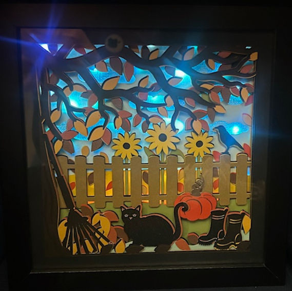 Our lightboxes are one of a kind handcrafted layered paper creations. Each lightbox is paired with a controller to change the color and rhythm of the lights to your liking. The light settings shown in each listing are not the only possibility for displaying the light.