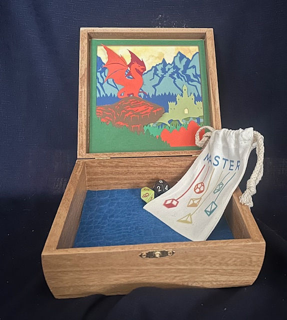 Each wooden box contains a surprise inside the lid and a few trinkets matching the theme. The design on the lid is either paper or permanent vinyl. The design inside is layered paper.